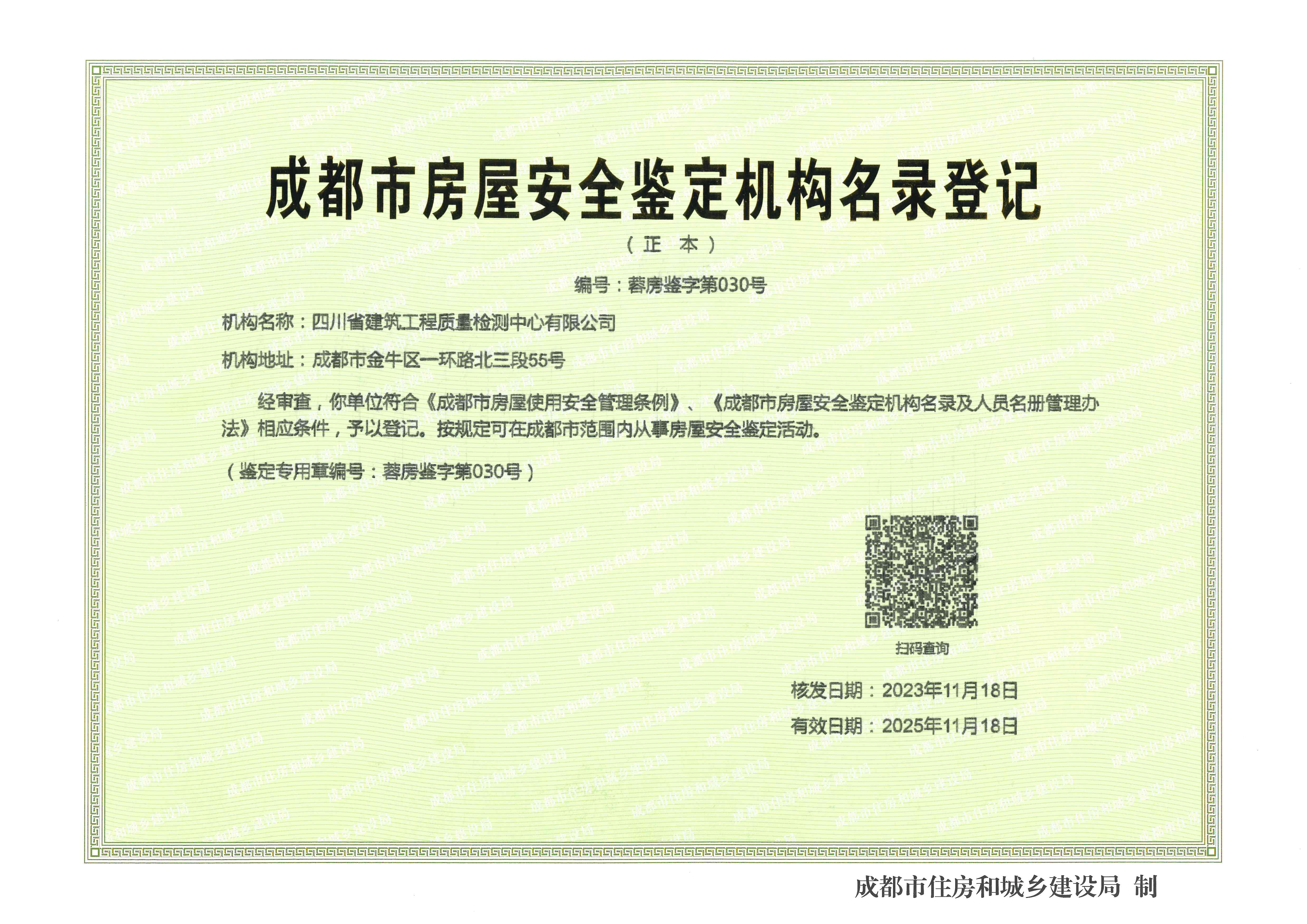 成都市房屋安全鑒定機(jī)構(gòu)名錄登記